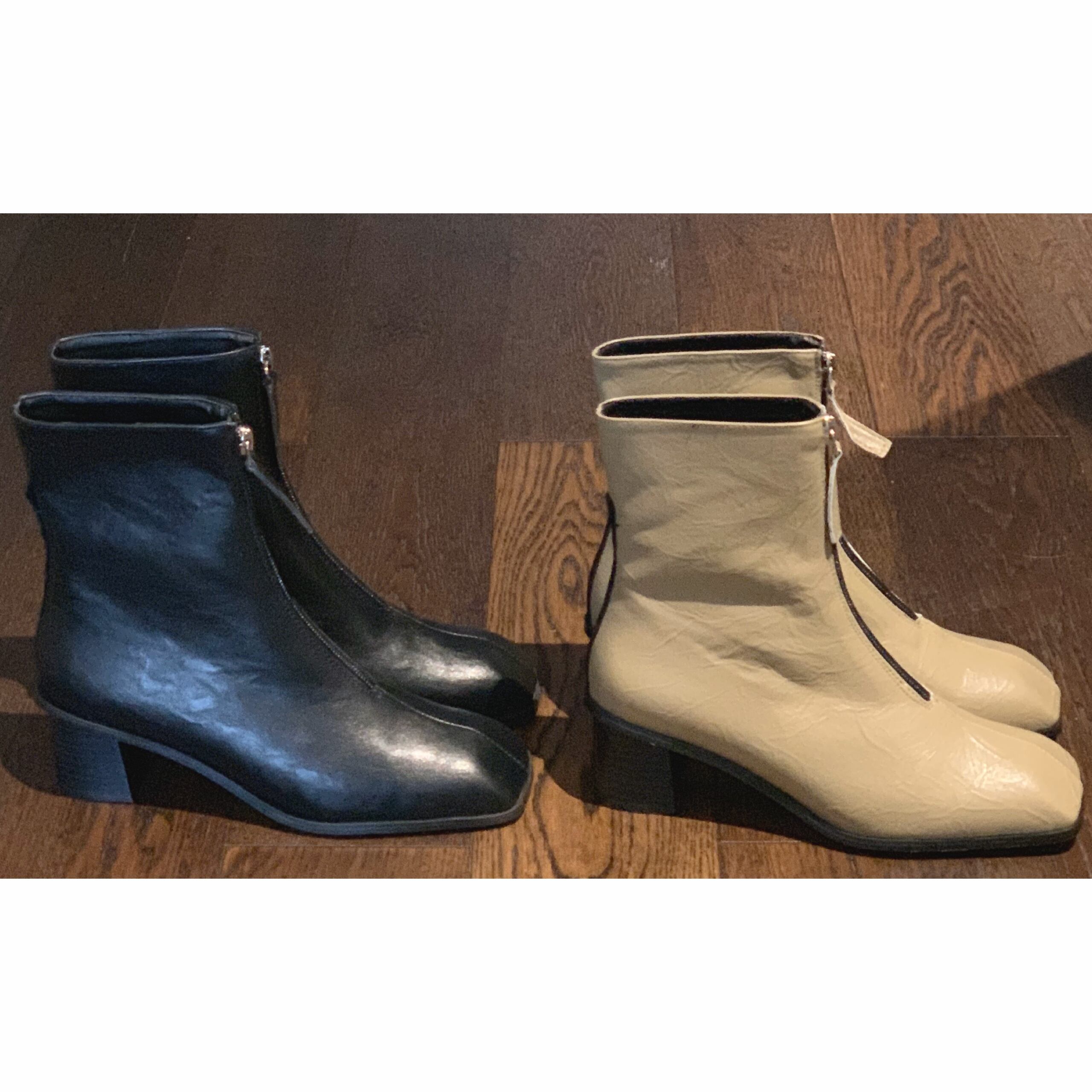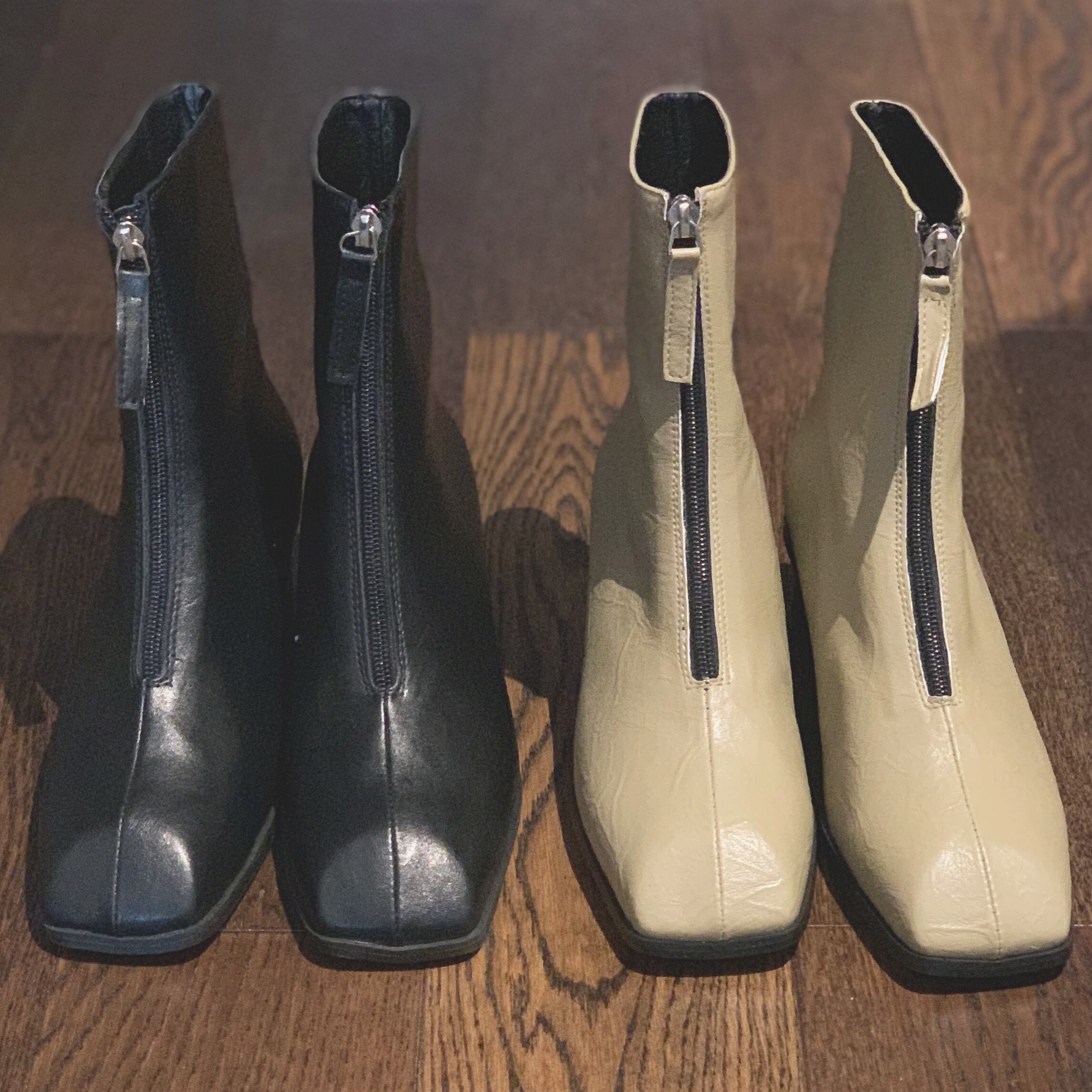 爪先スクエアカットのセンタージップショートブーツが登場。
